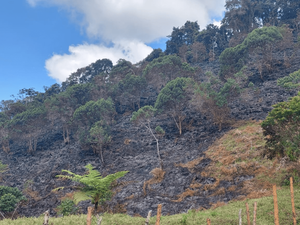 Las imágenes fueron cedidas sobre lo acontecido a www.ejeinforma.com que las publica, debido a la gravedad de los hechos ocurridos en el boscoso sector adscrito a la Cuchila del río San Juan, que limita con 4 departamentos y tiene una extensión de por lo menos 40 mil hectáreas. Doce de ellas sufrieron la acción del fuego y daños considerables en la tierra, cultivos, animales, flora y ríos y contaminación del aire.