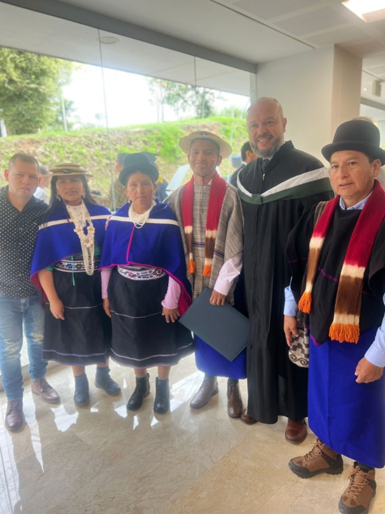 Floro se graduó de médico y recibió su diploma con su vestimenta tradicional de los hombres Misak, que incluye pantalones anchos y ponchos. Este atuendo no solo representa su identidad cultural, sino también su orgullo por sus raíces y su compromiso con su comunidad.