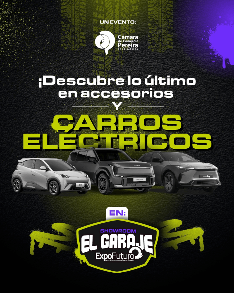 ¡Ven! A la Feria ´El Garaje´ Y descubre la última tecnología en carros eléctricos. Vive un tiempo en familia con las mejores exhibiciones. Del 28 de febrero al 2 de marzo en Expofuturo, Pereira ¡Ingreso gratuito!. Desde las 11:00 a.m @camarapereira Comparte esto: Compartir en X (Se abre en una ventana nueva) X Comparte en Facebook (Se abre en una ventana nueva) Facebook Me gusta Cargando... Relacionado