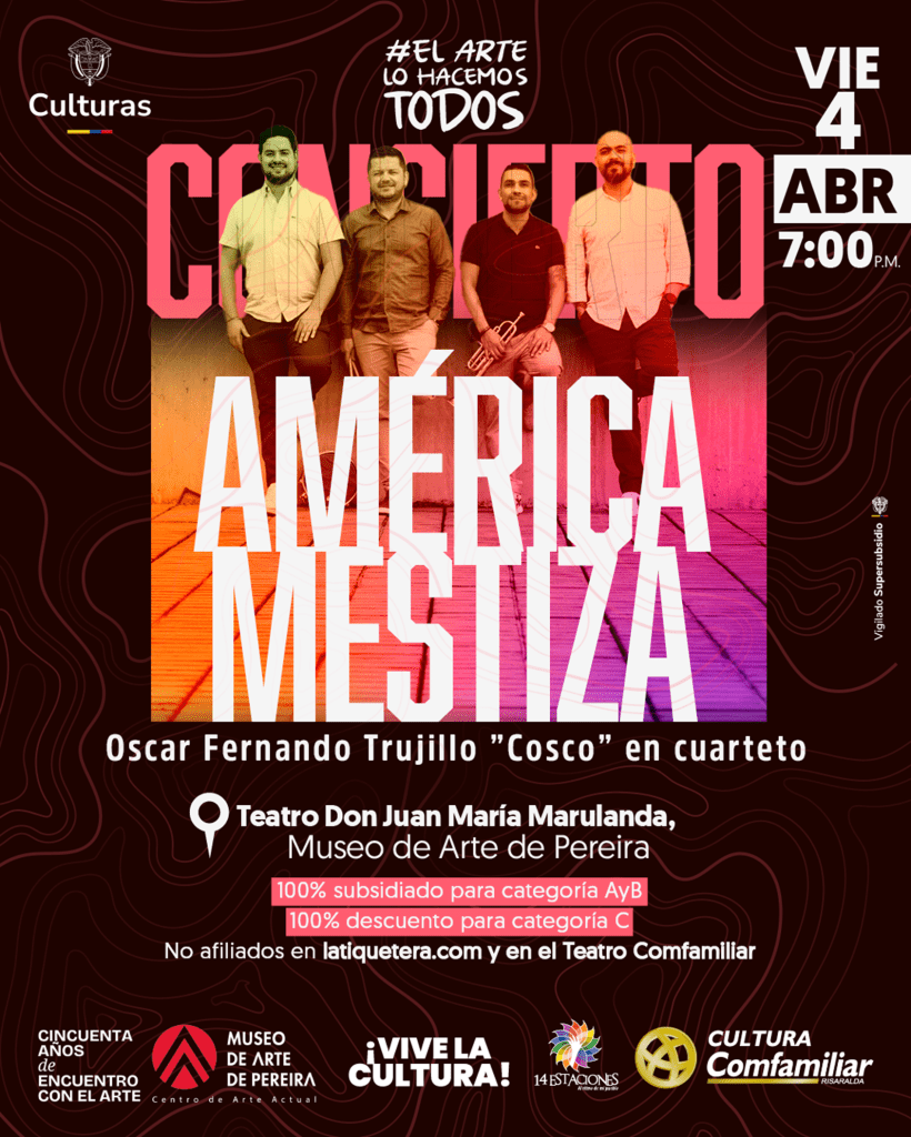 Comfamiliar Risaralda y el Museo de Arte de Pereira te invitan a un recorrido musical lleno de ritmos y tradiciones de diferentes países latinoamericanos con “Cosco” en Cuarteto.