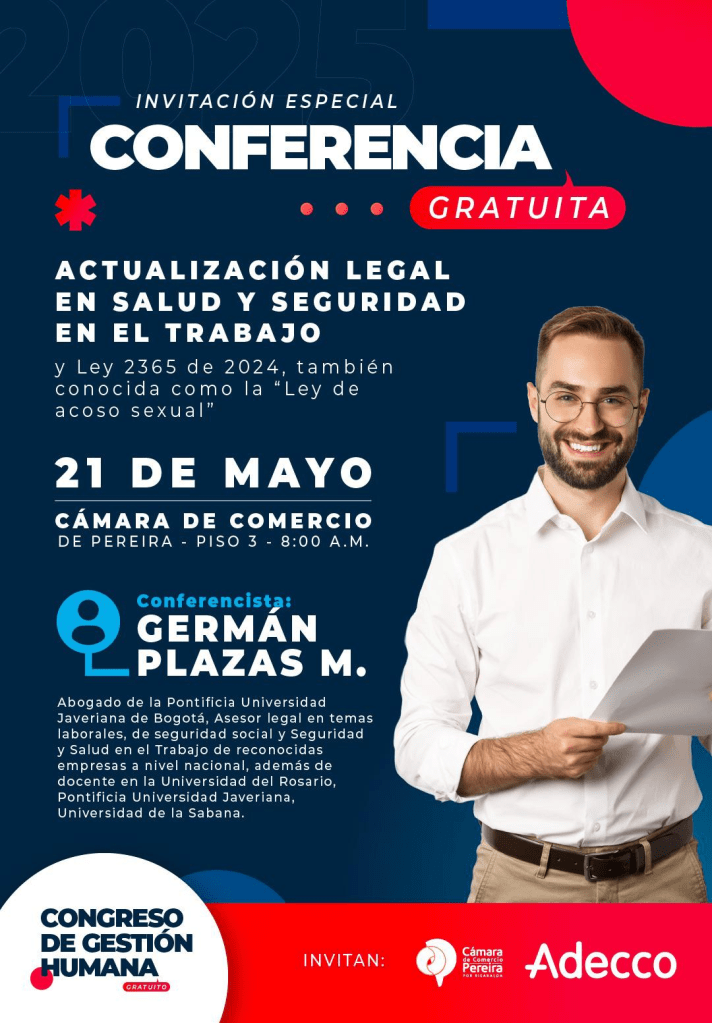 🎤 Conferencista: Germán Plazas M., abogado experto en derecho laboral y docente universitario.