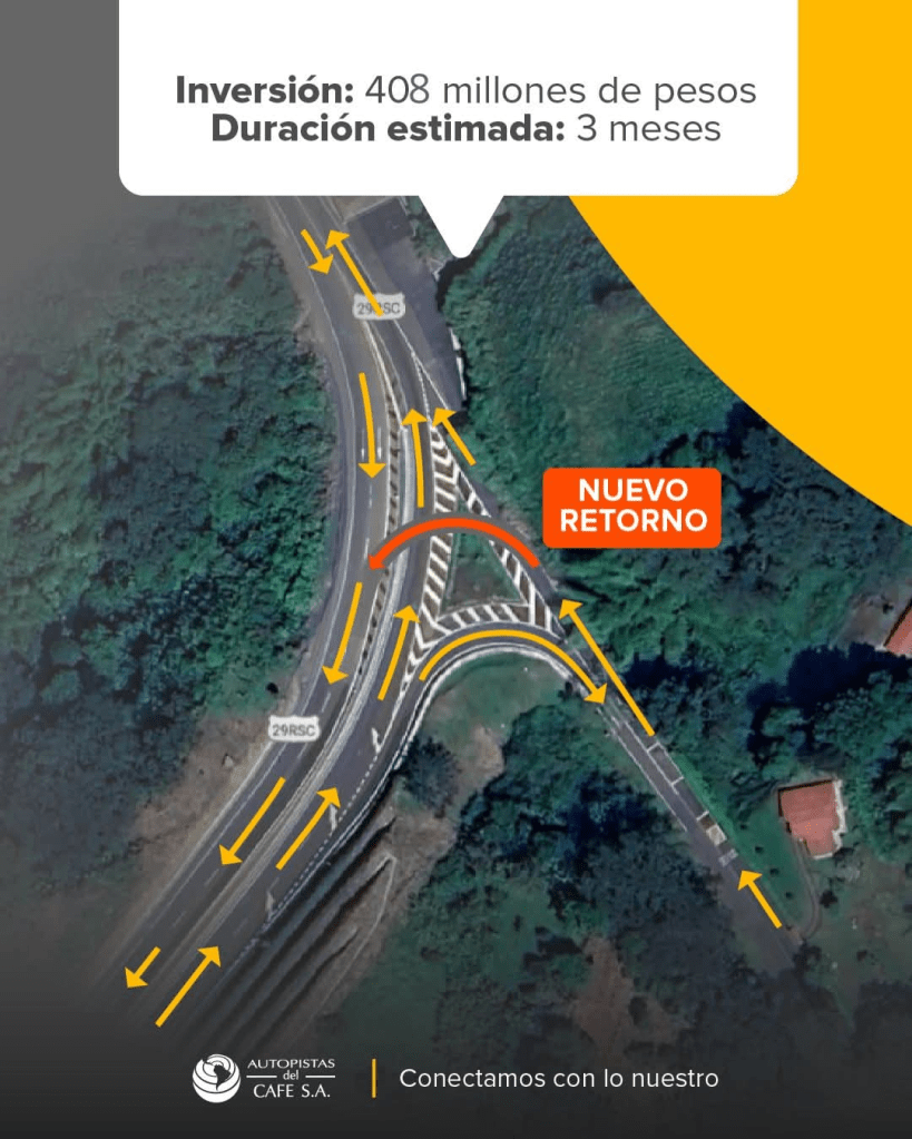Tras diversas solicitudes de la comunidad y la realización de espacios de diálogo social, se acordó construir esta intersección como una solución provisional, mientras se avanza en la ejecución del proyecto de doble calzada Pereira–Manizales, que contempla una solución definitiva a los problemas de movilidad del sector.
