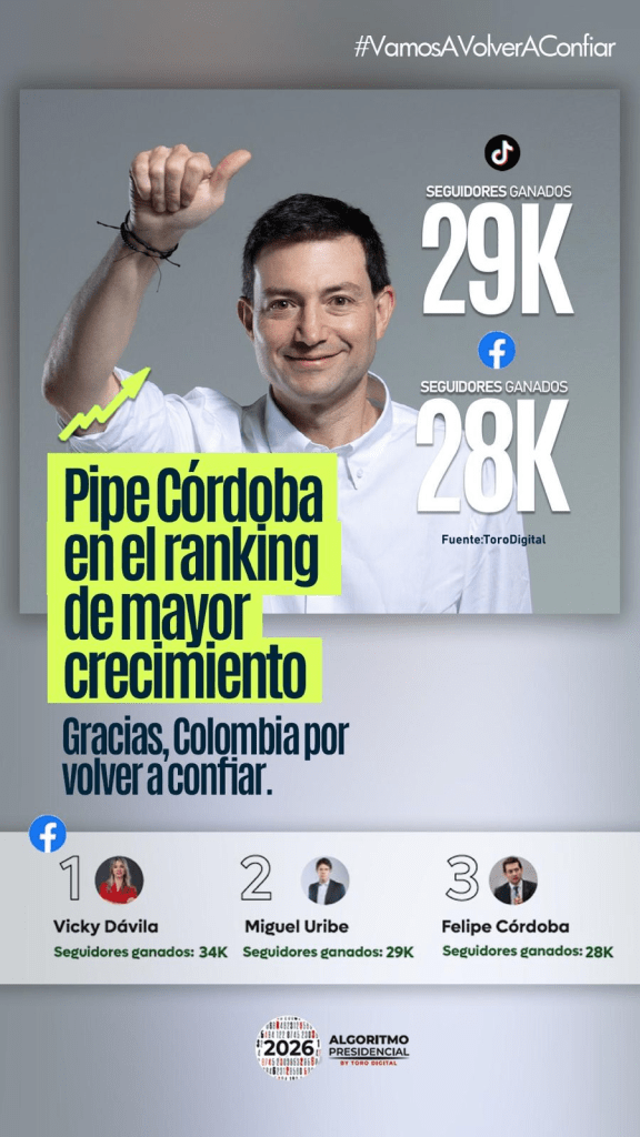 En Colombia la gente vuelve a confiar. Esta vez por Carlos Felipe – Pipe – Córdoba Larrarte, como una joven figura en ascenso por llegar al Palacio de Nariño.