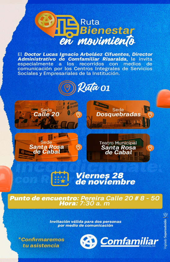 En una invitación que hizo a los distintos medios de comunicación, el director Administrativo de COMFAMILIAR Lucas Ignacio Arbeláez Cifuentes, que llamó el evento como un recorrido por la ruta de bienestar en movimiento.