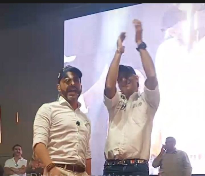 El Tigre que rugió en Pereira, al lado de us esposa, Ana Lucía Pineda, hizo una coreografía a lo Lrego de su disertación y de buena manera agradeció a quienes hicieron el evento y en tono jocoso añadió: “siempre que me pasan el listado de saludos ” esto se parece- dijo – a un disco de Diomedes Diaz, que es cada vez más grande.