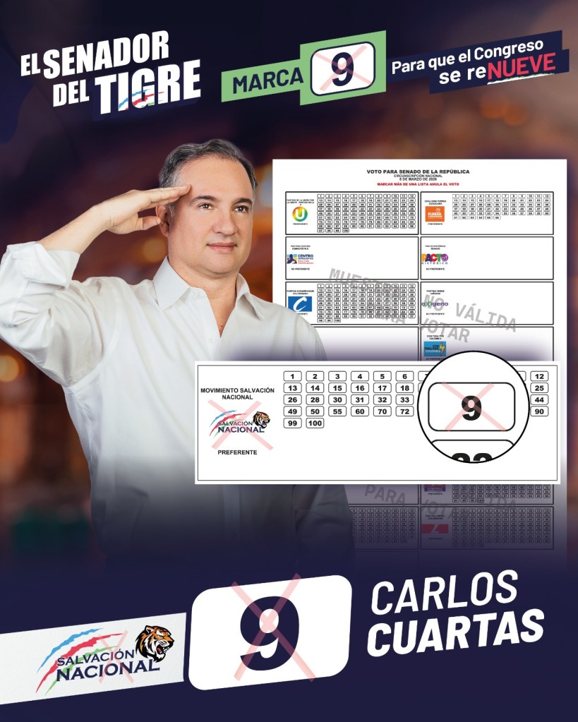 Al señalar el crecimiento de Salvación Nacional en Colombia, el empresario antioqueño, Carlos Cuartas, # 09 en la tarjeta electoral, indicó que en Colombia el deseo de cambio es imparable, cuando nace gente honesta.