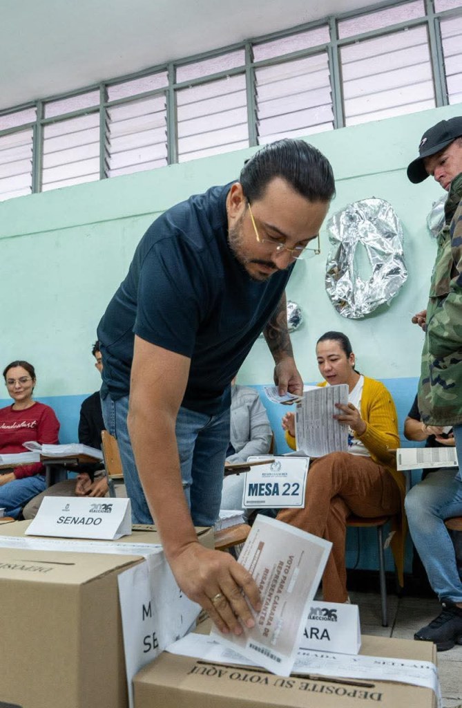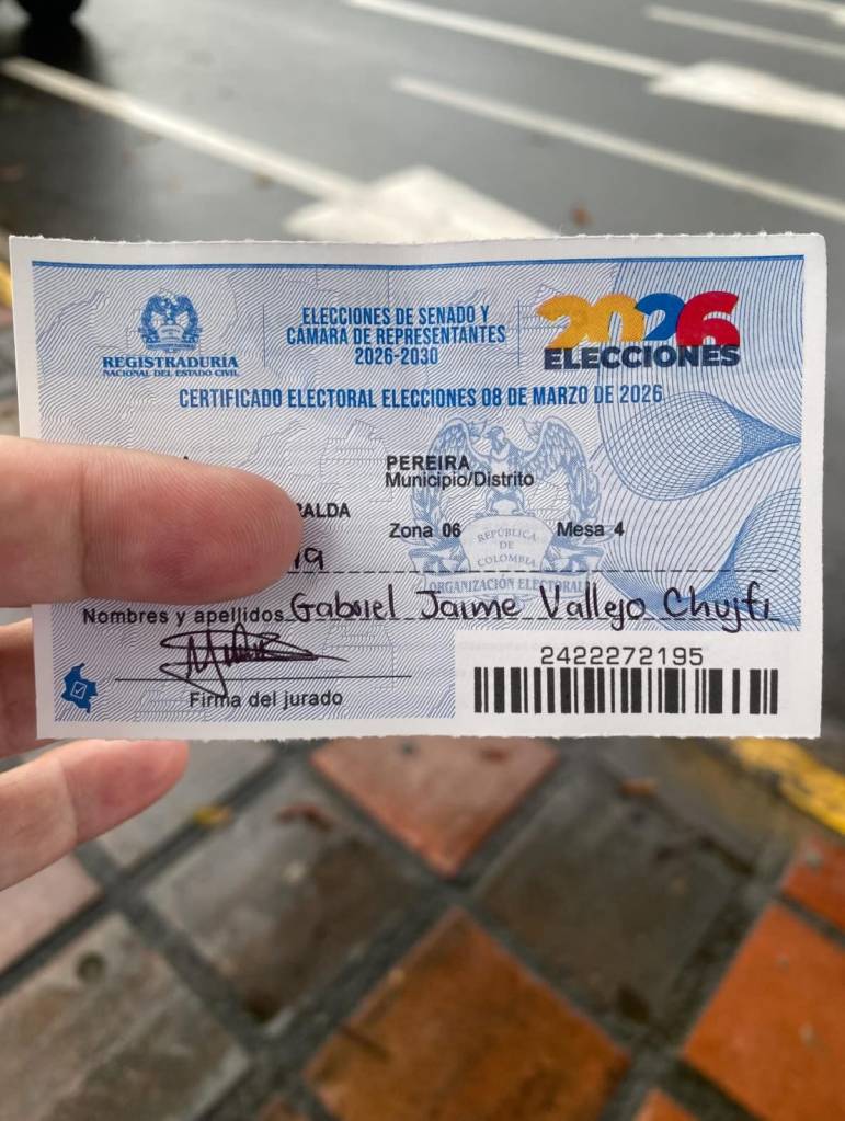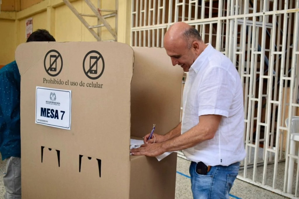Madrugó a votar en Pereira, el director nacional del CD, Gabriel Jaime Vallejo Chujfi.