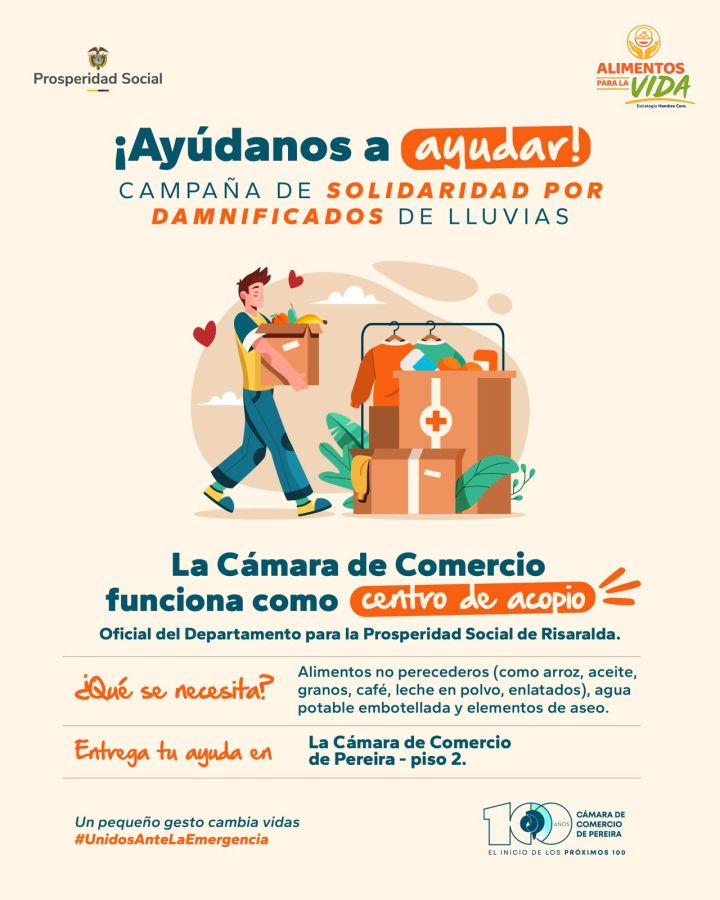 Entrega tu ayuda en la Cámara de Comercio de Pereira – Piso 2.