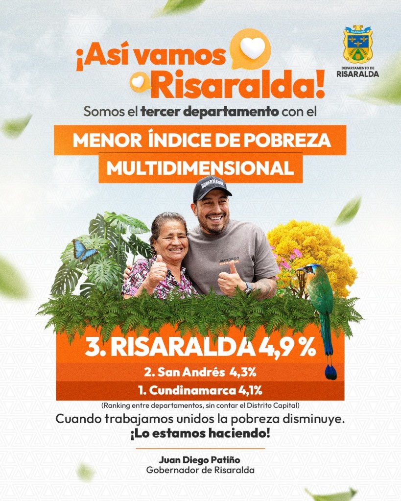 Posiciona por lo tanro a Risaralda como el departamento que más redujo la pobreza multidimensional en Colombia durante el último año.