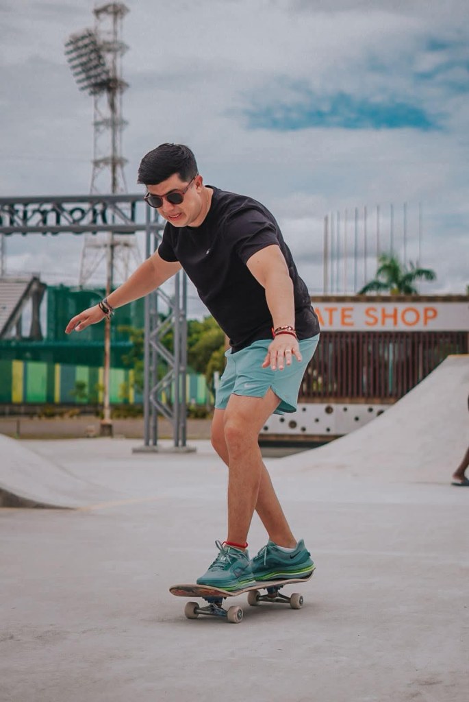 Tiempo para la diversión en una pista que ayudó a construir, lo hace en su patineta personal, el senador Gustavo Moreno.